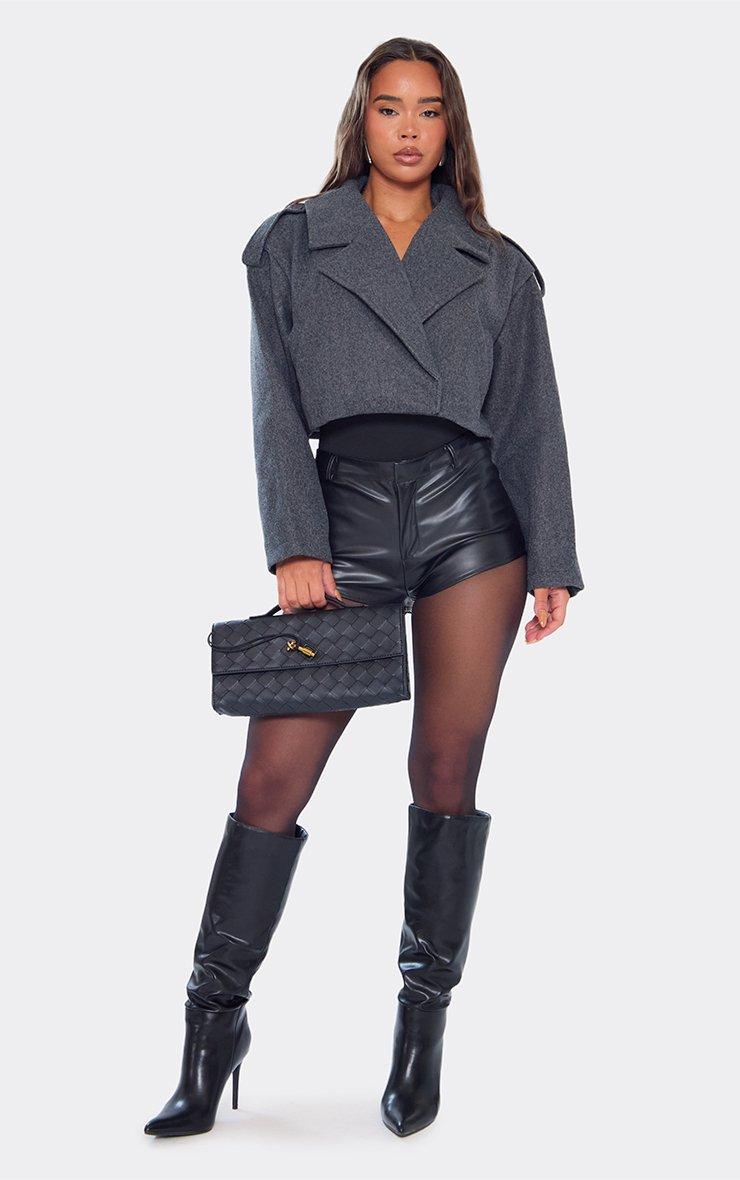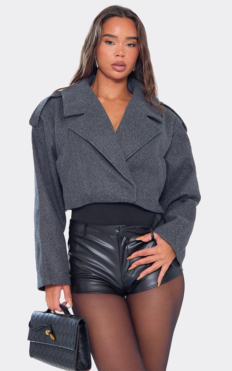 cropped trench jacket in grey wool