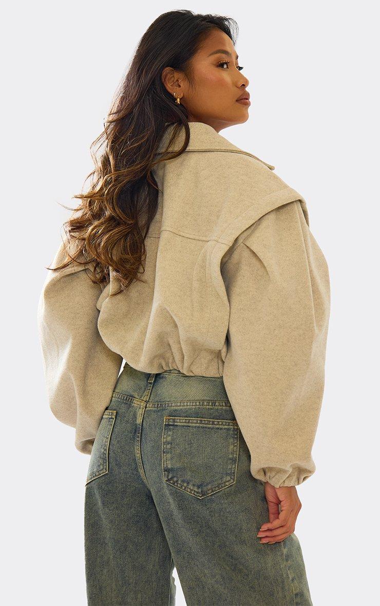 Long Sleeve Cinched Waist Cropped Wool Look Trench Jacket In Beige