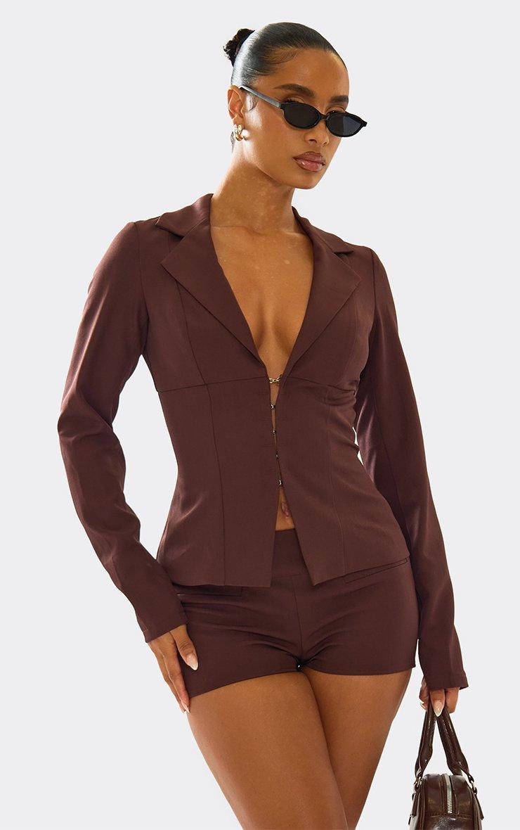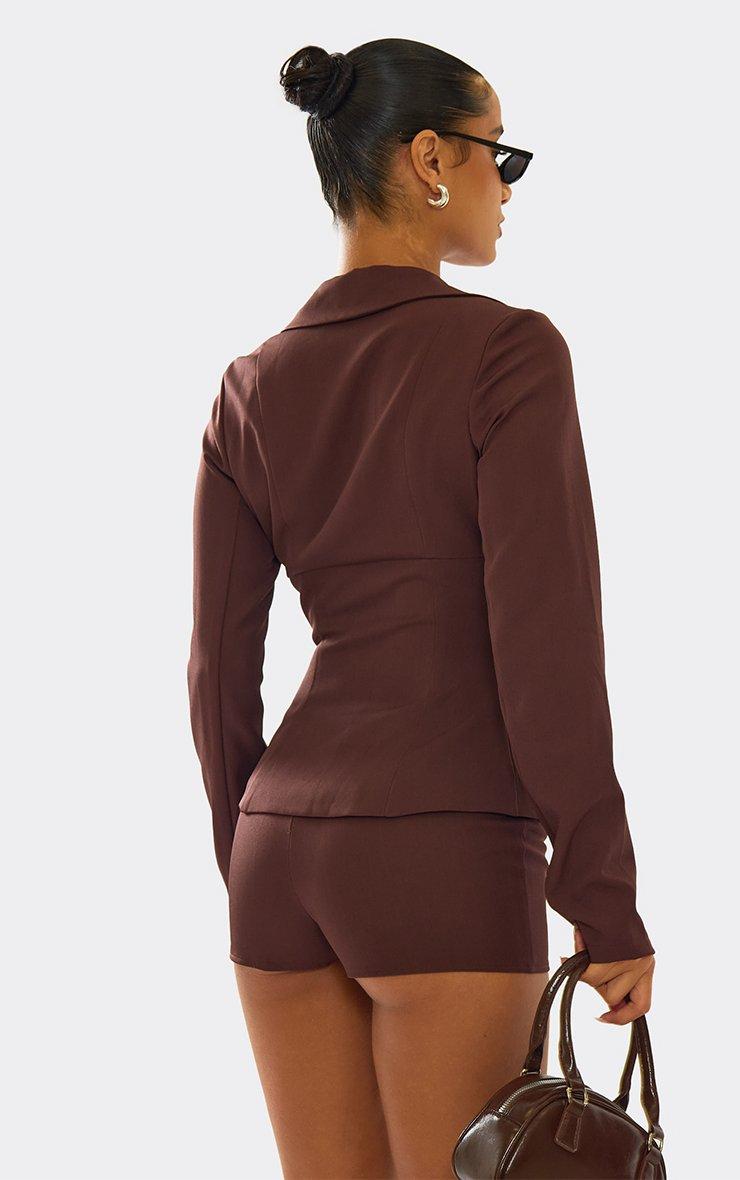 Long Sleeve Tailored Blazer In Chocolate Brown