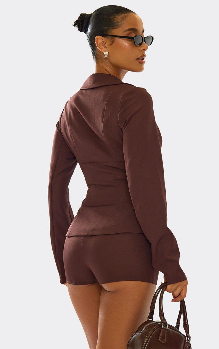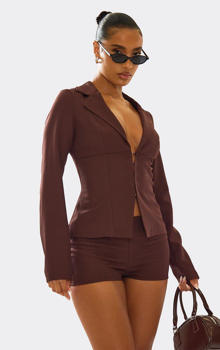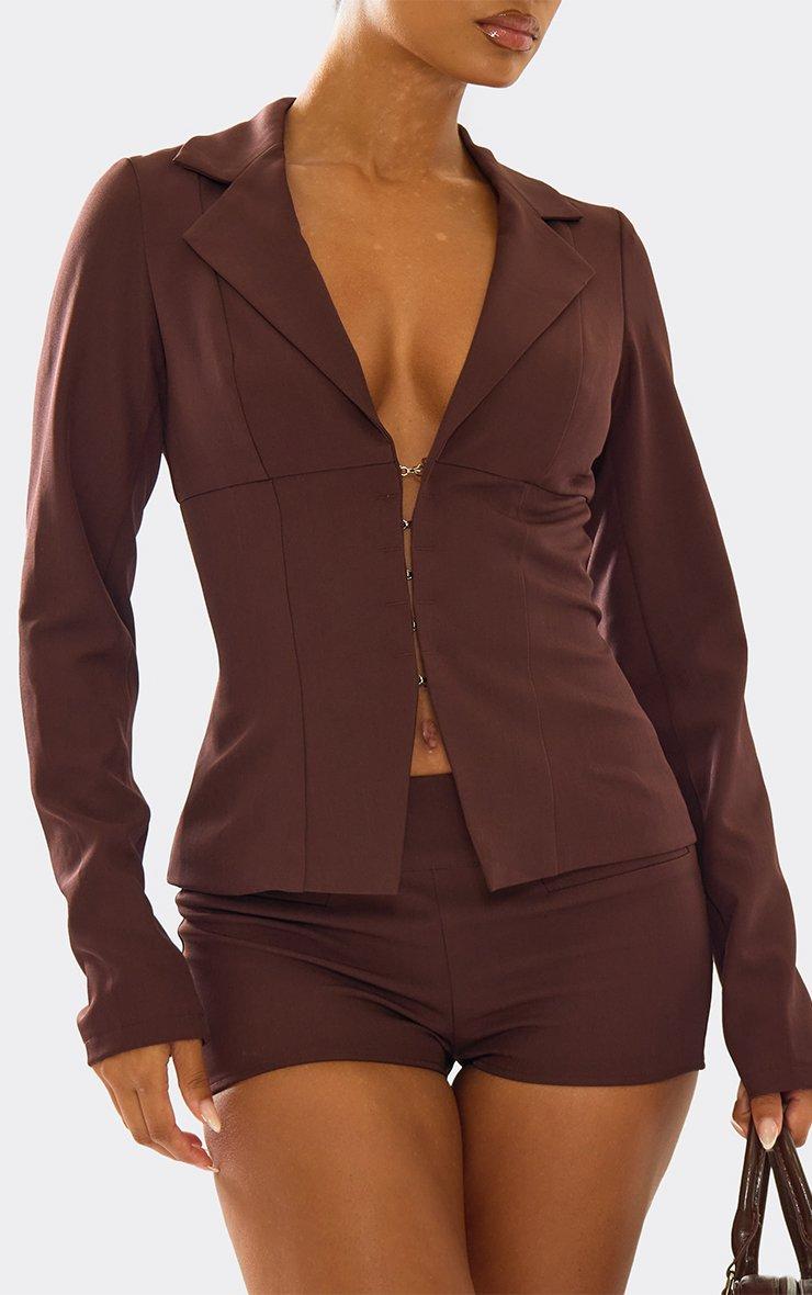 Mid Rise Front Pocket Tailored Fitted Hot Pants In Brown
