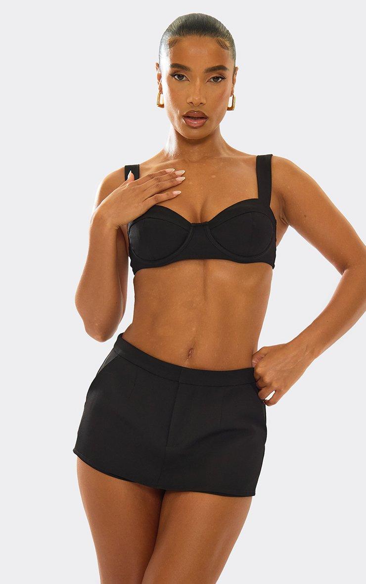 Cupped Detail Strappy Tailored Crop Top In Black