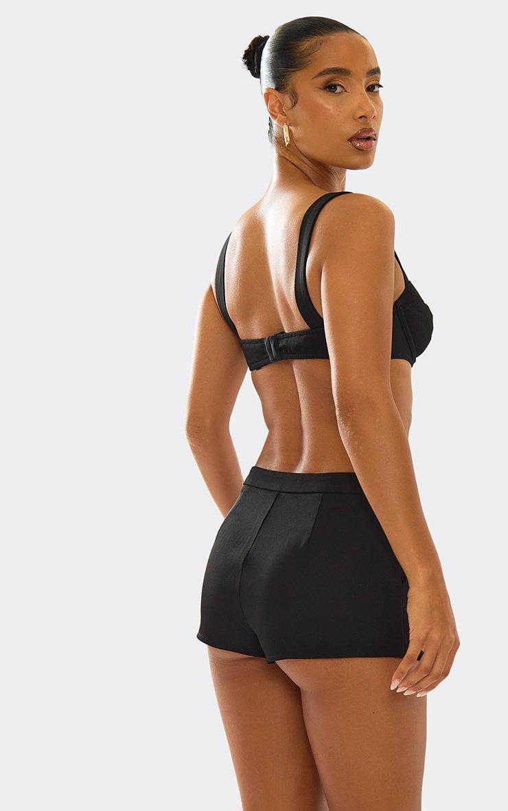 cupped detail strappy tailored crop top in black