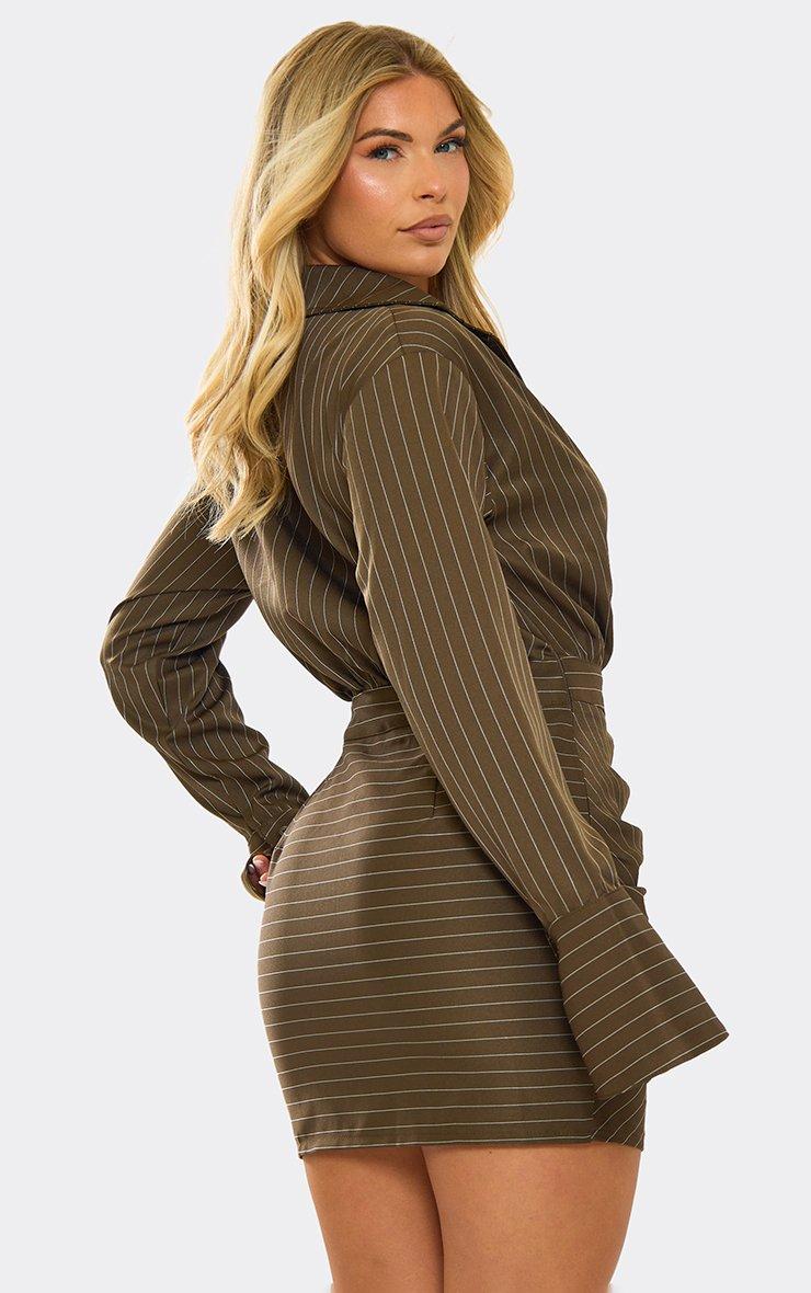 High Neck Drape Detail Structured Mini Dress In Khaki.
