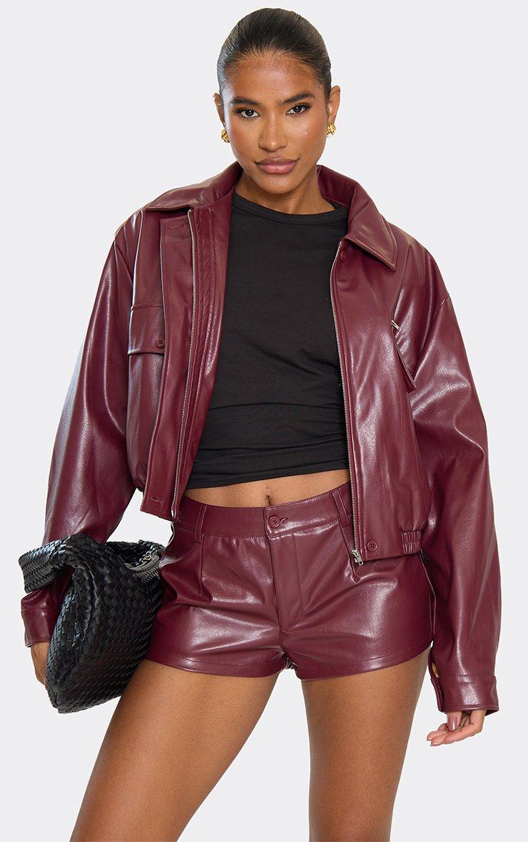 Long Sleeve Zip Through Seam Detail Sculpt Jacket In Burgundy Red