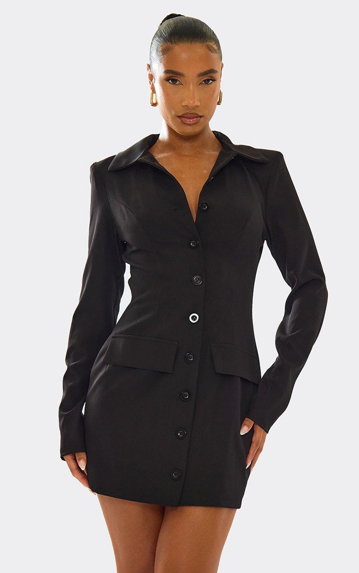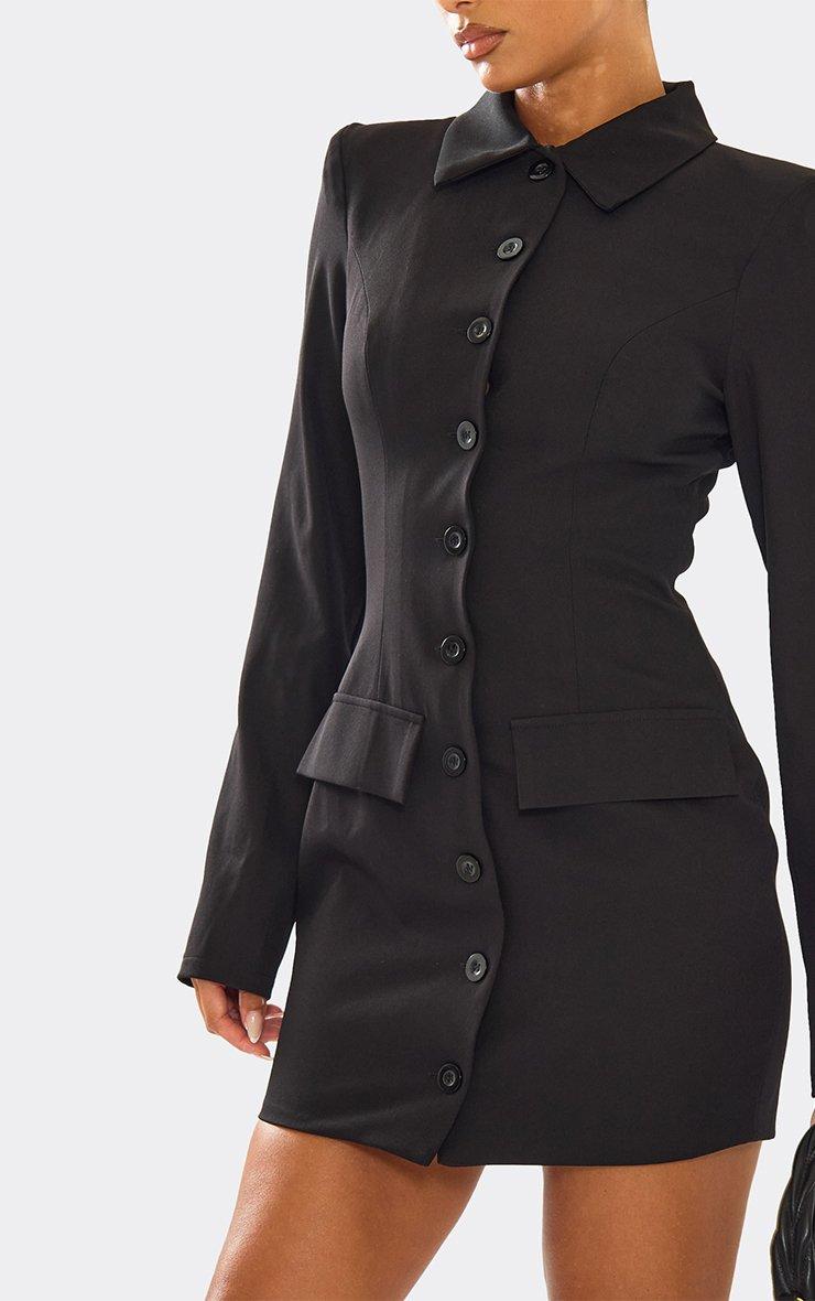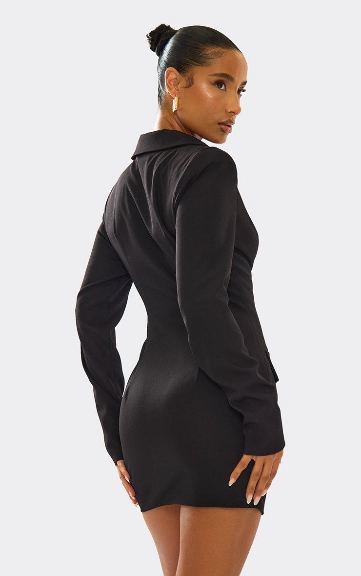 Long Sleeve Strappy Detail Blazer Dress In Black Woven