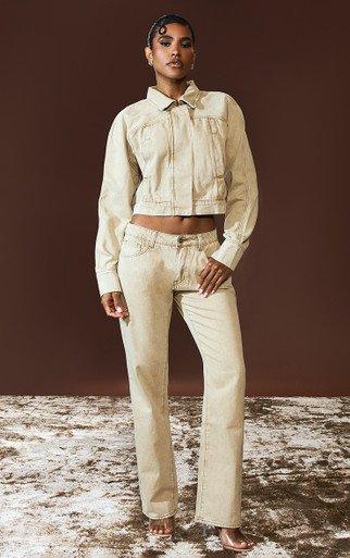 Low Rise Straight Leg Jeans In Washed Stone Denim
