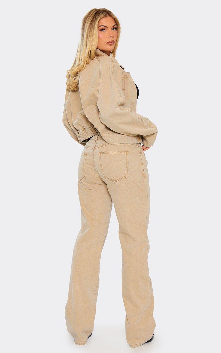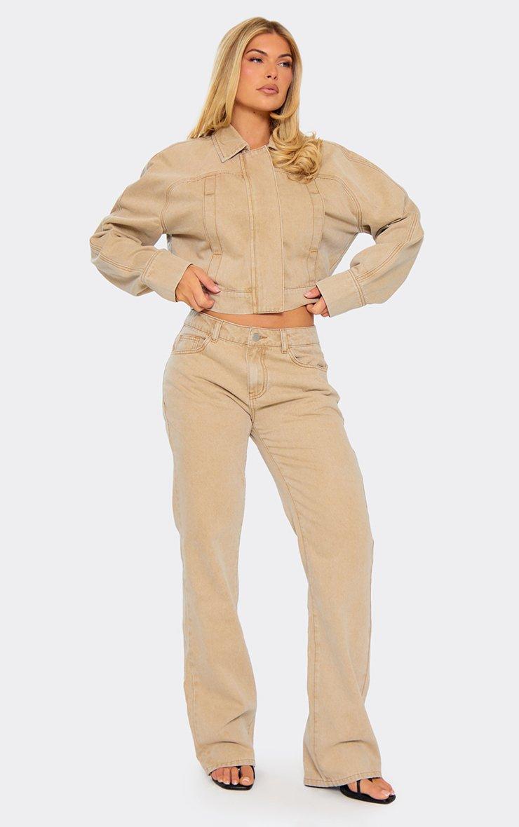 Long Sleeve Extreme Cropped Jacket In Chocolate Brown Denim