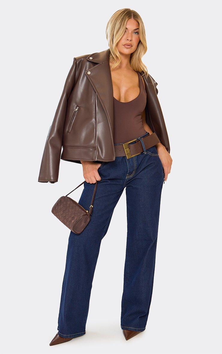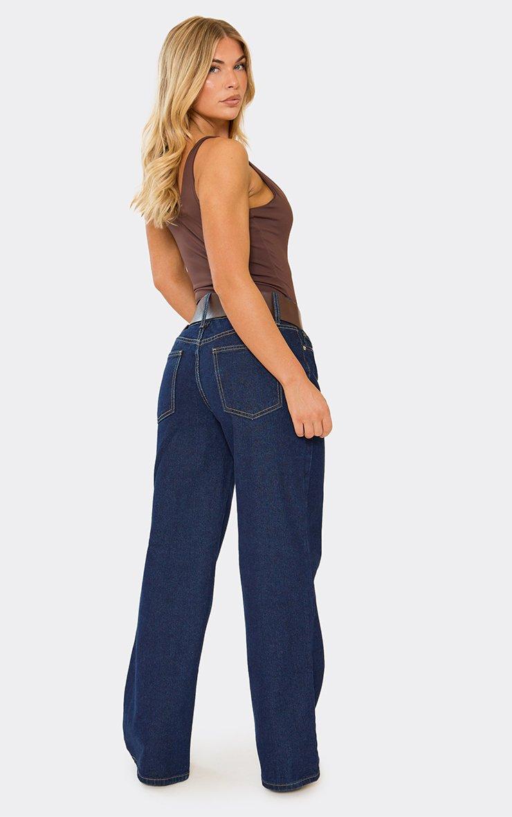 Low Rise Belted Straight Leg Jeans In Indigo Blue Denim
