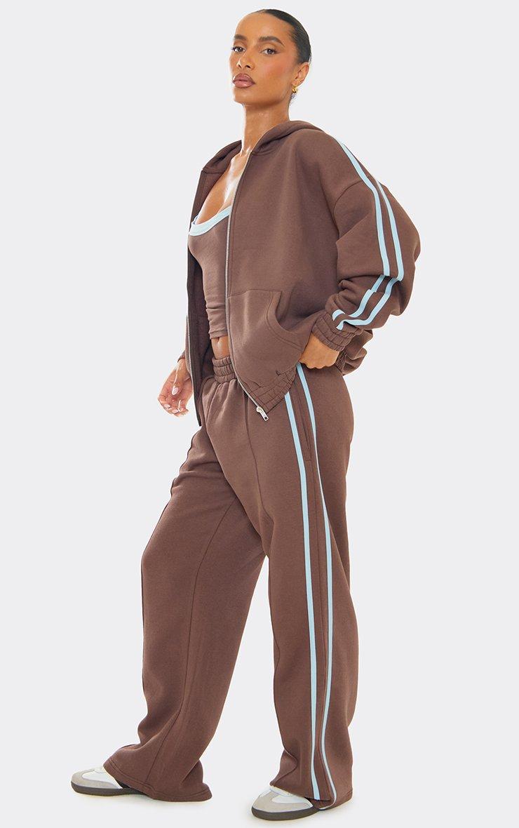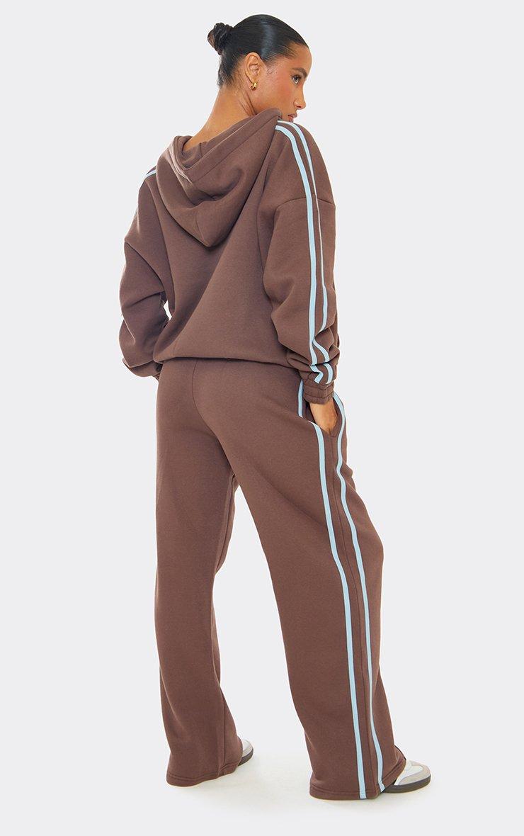 Low Rise Contrast Side Stripe Straight Leg Joggers In Chocolate Brown