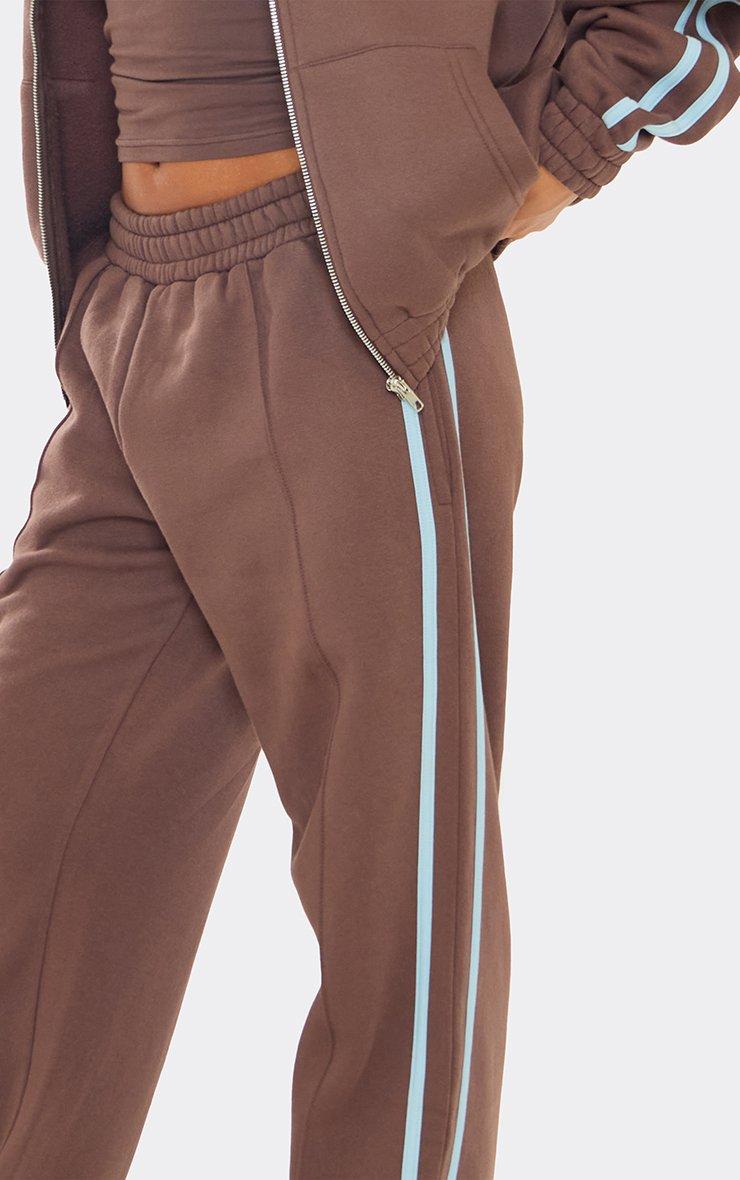 low rise contrast side stripe straight leg joggers in chocolate brown