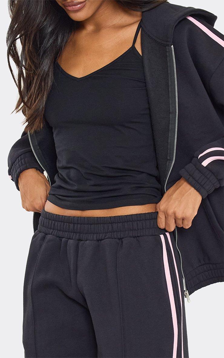 Oversized Mid Rise Contrast Stripe Straight Leg Joggers In Dark Navy