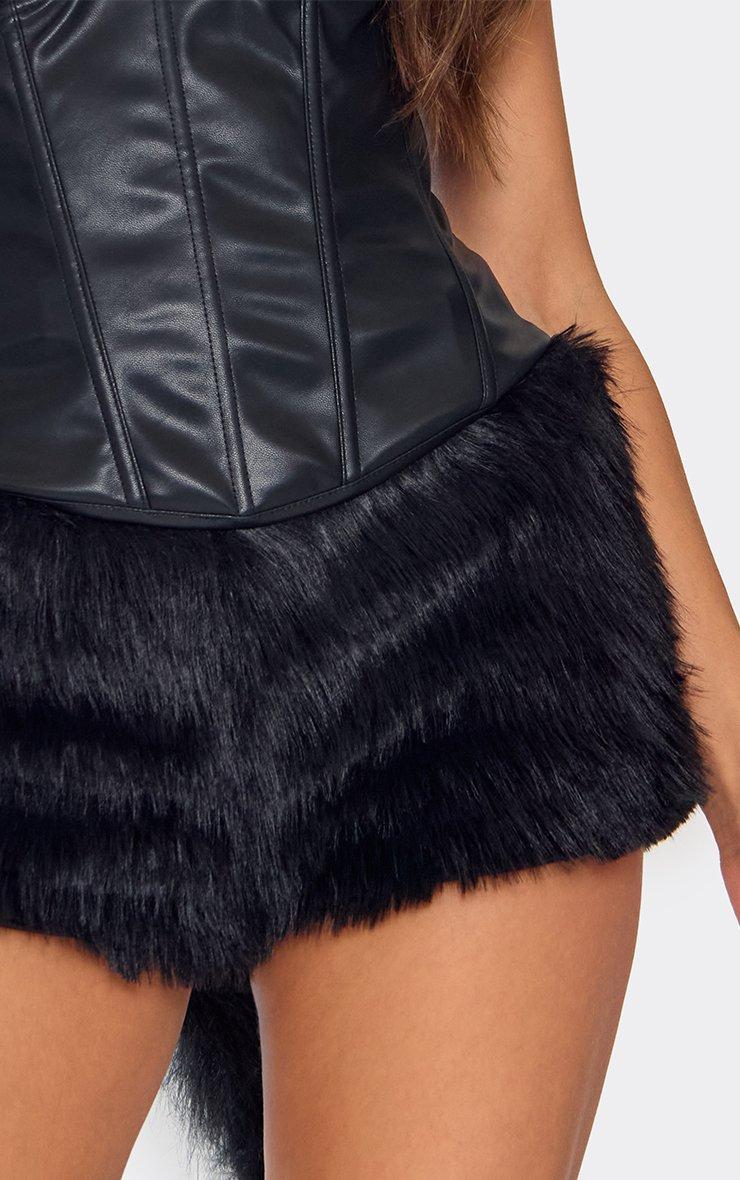 Mid Rise Lace Up Detail Hot Pants In Black Faux Leather