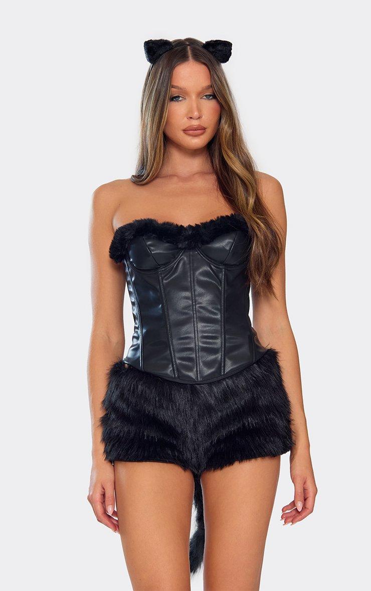 Mid Rise Belted Lace Up Side Seam Detail Shorts In Black Faux Leather