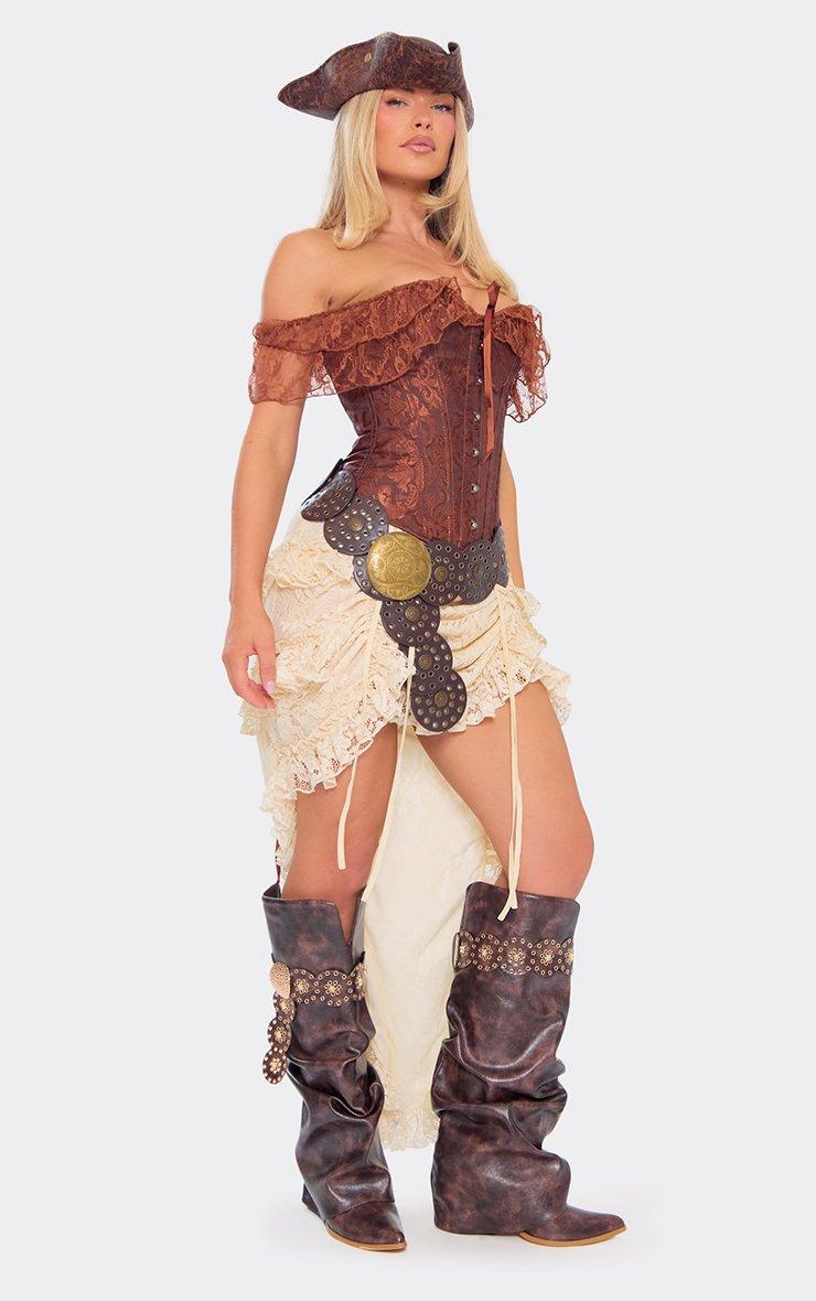 Bardot Lace Up Back Corset Top In Brown Lace.
