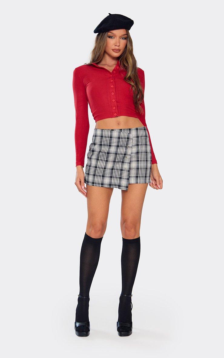 mid rise safety pin detail mini wrap skirt in black checked print