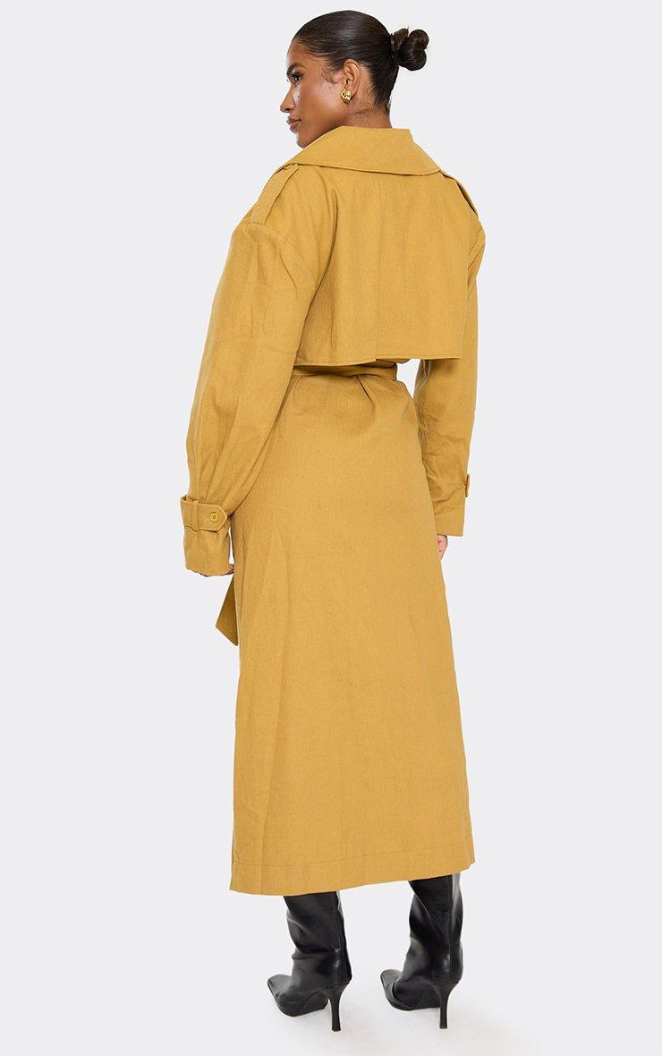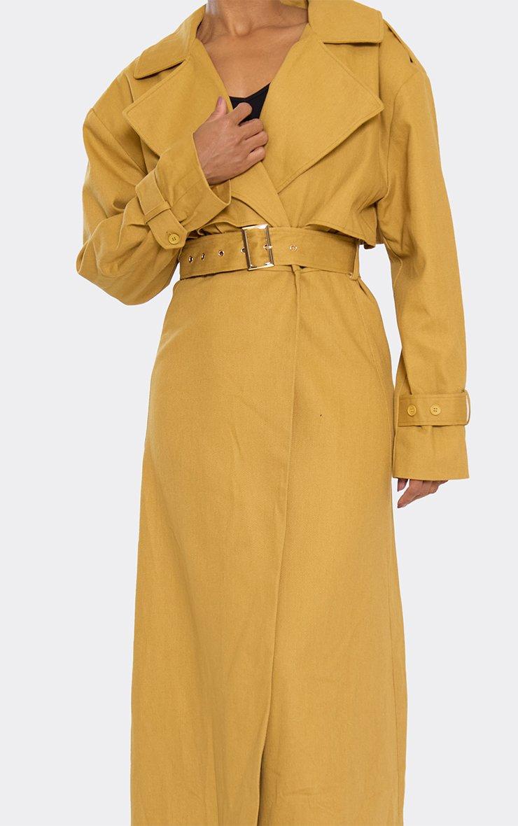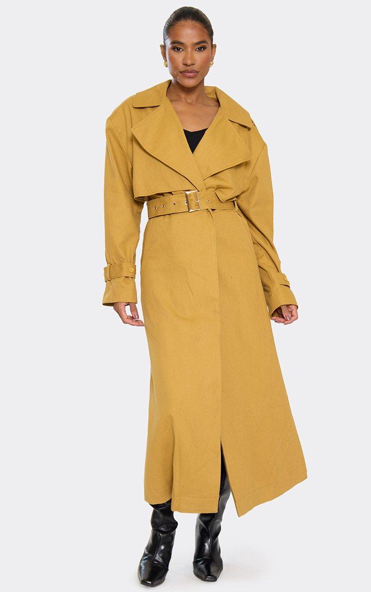 Maxi Belted Trench Coat In Mustard Brown Twill
