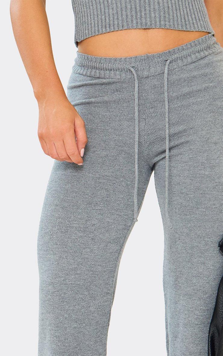Tie Waist Wide Leg Trousers In Grey Rib Knit
