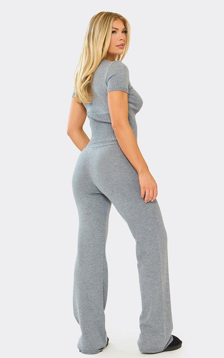High Waist Wide Leg Trousers In Grey Premium Knit