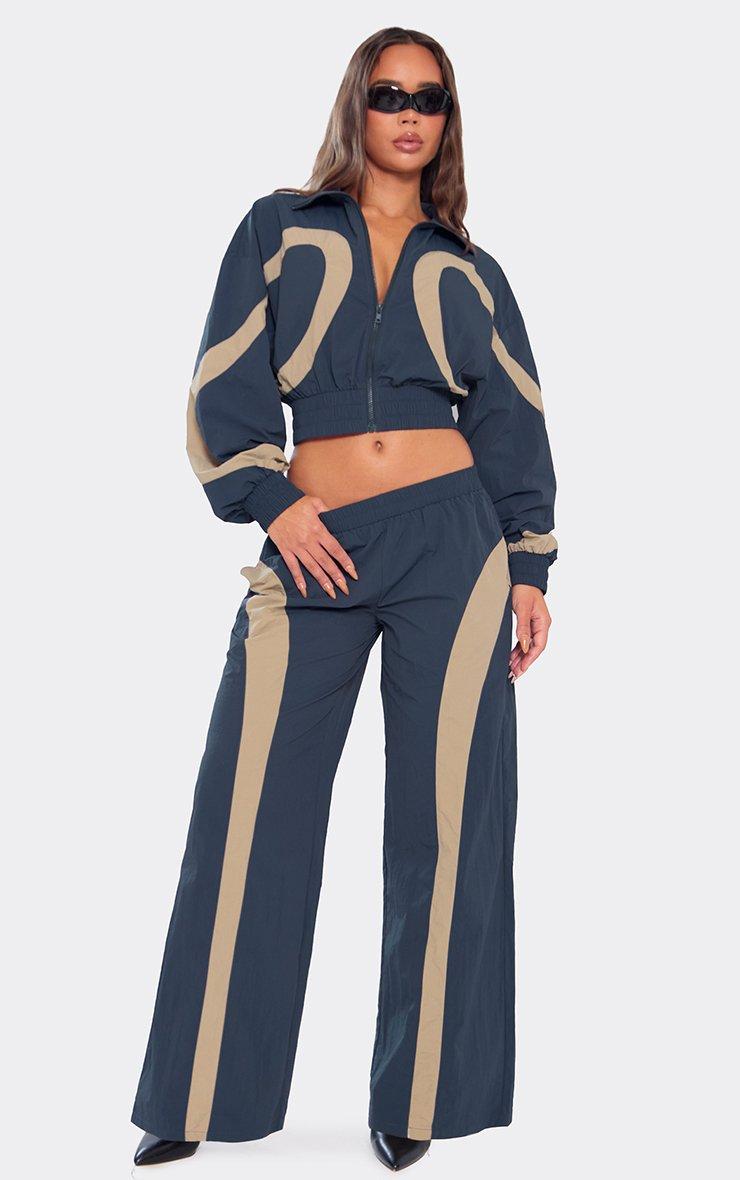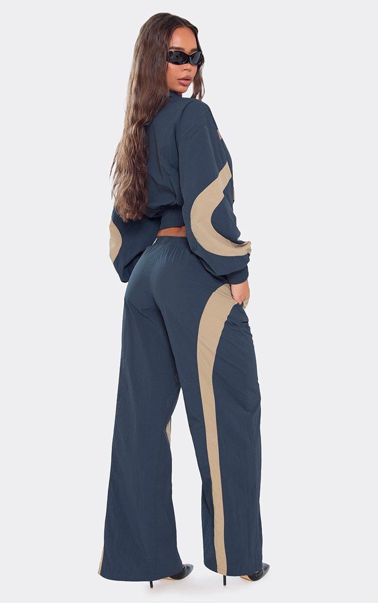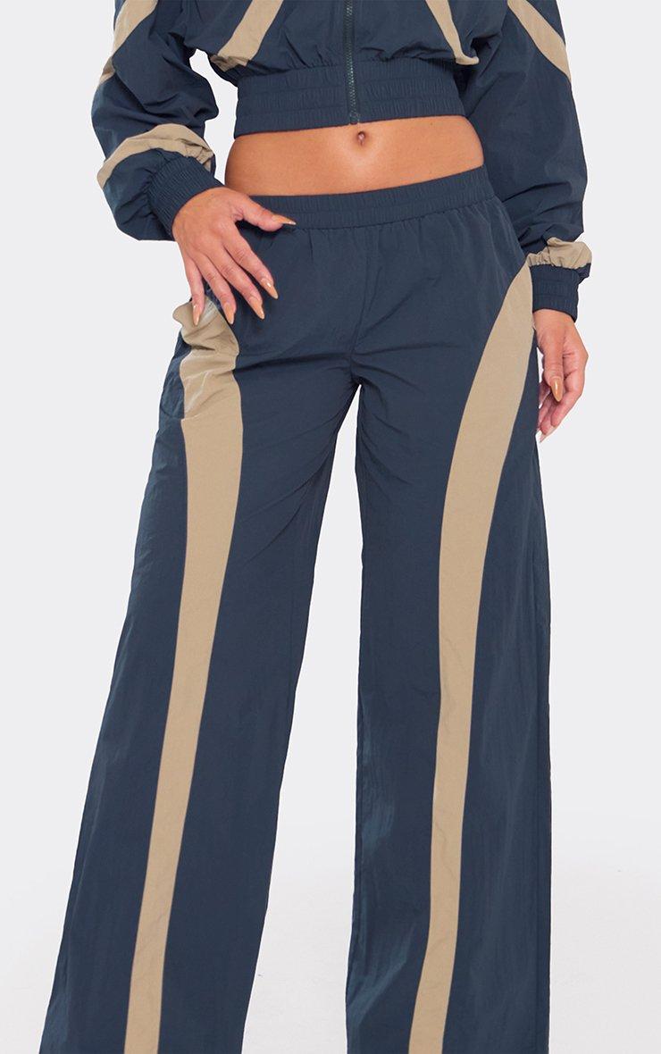 Low Rise Contrast Panel Track Pants In Navy Shell