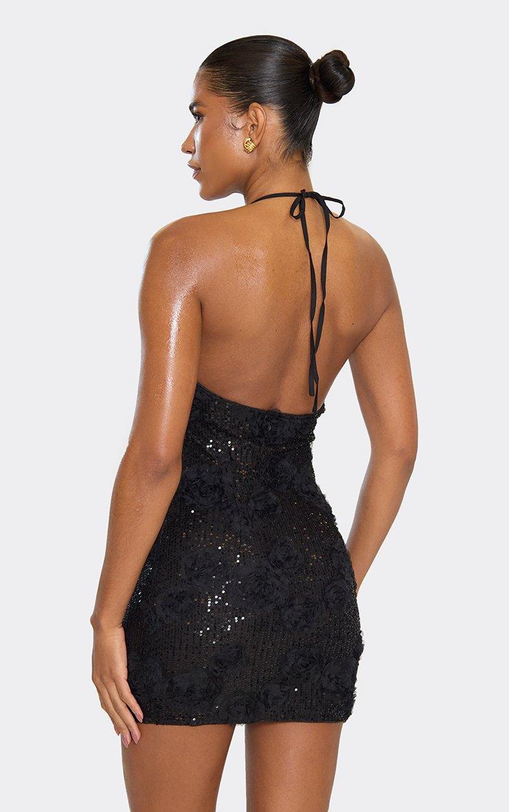 Strappy Underwired Detail Mini Dress In Black Floral Sequin