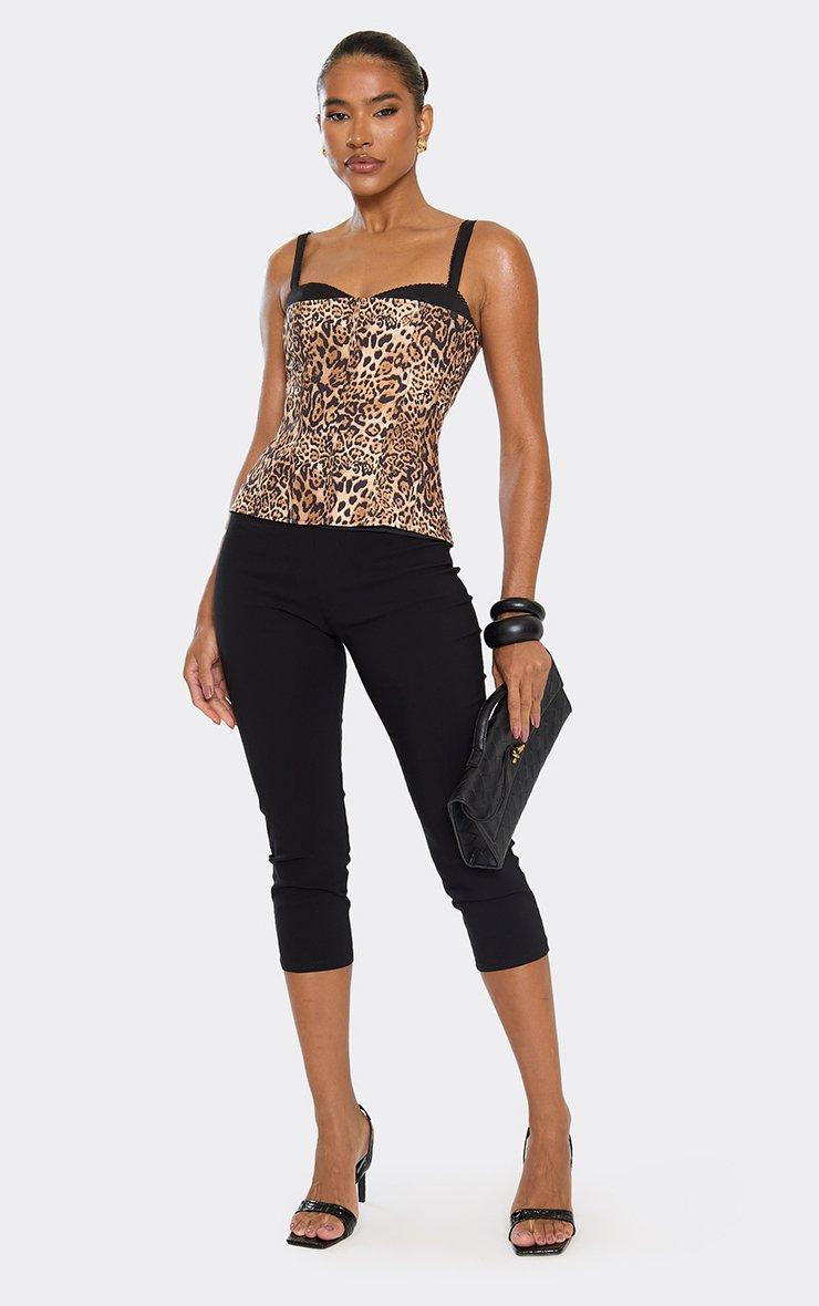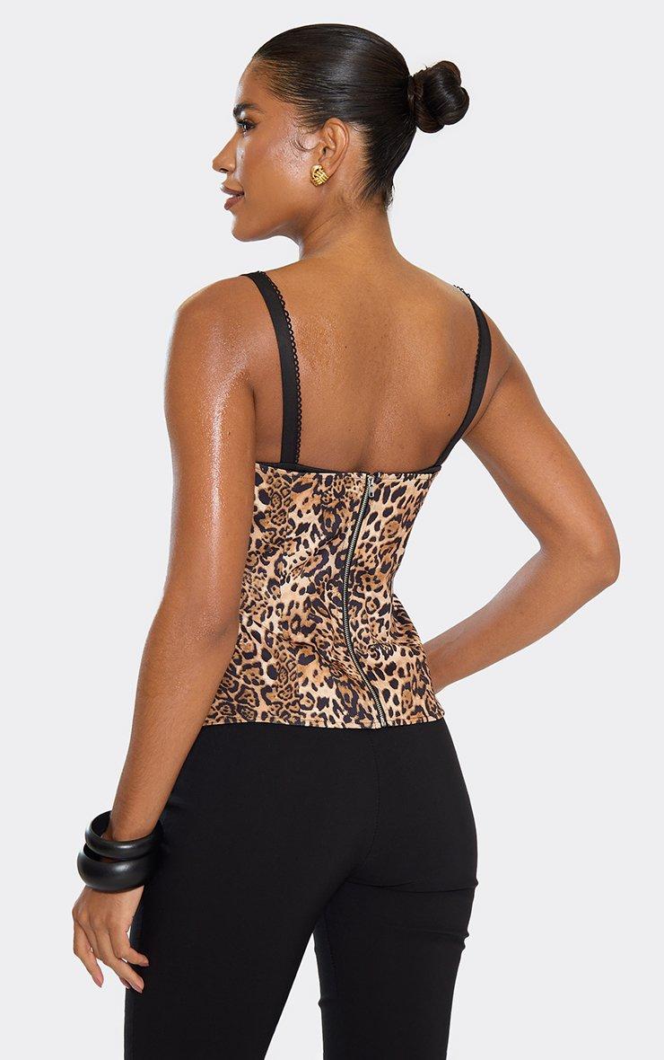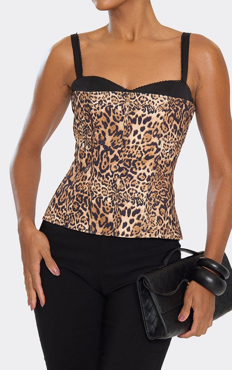 Strappy Contrast Trim Corset Detail Top In Multi Leopard Print