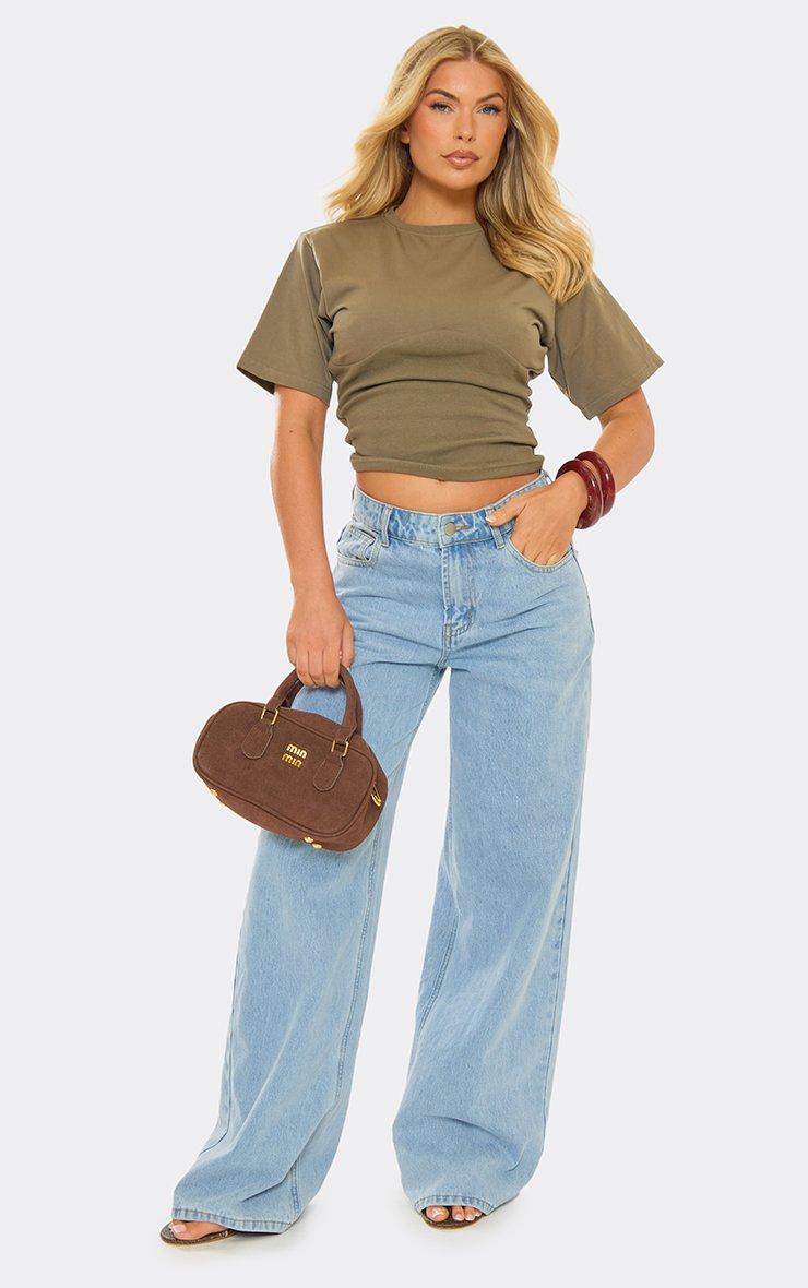 short sleeve seam under bust detail fitted t-shirt in khaki green