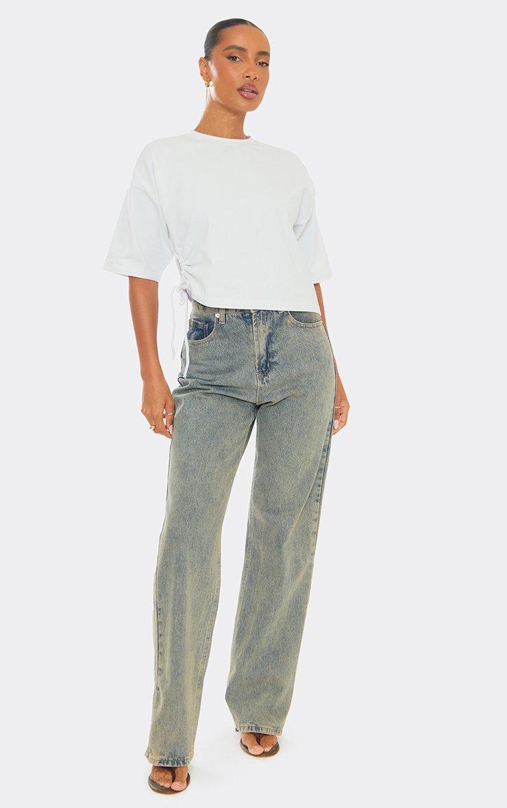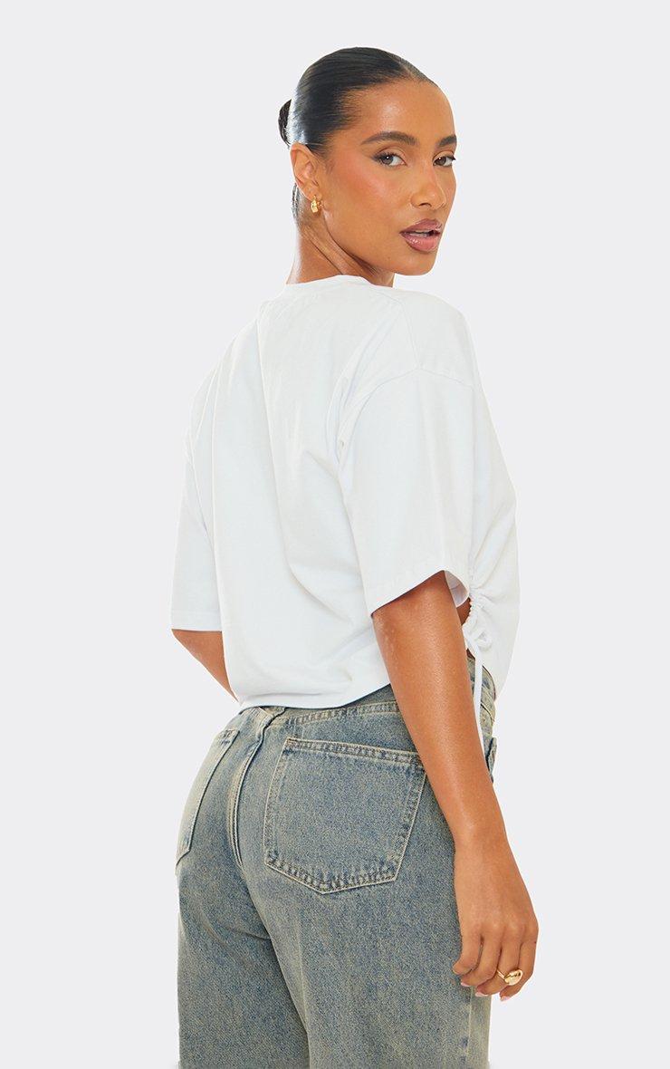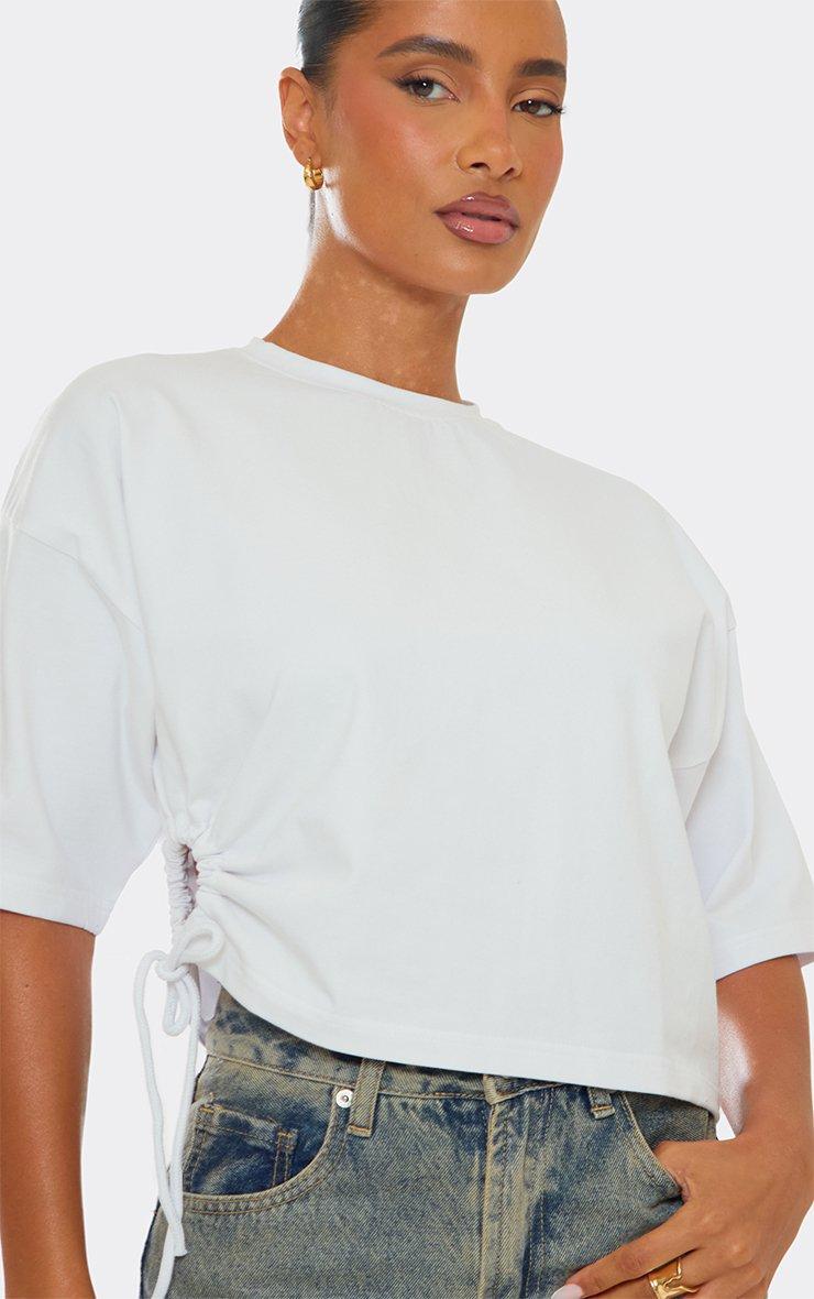 Tie Side Cut Out Detail Oversized T-Shirt In White