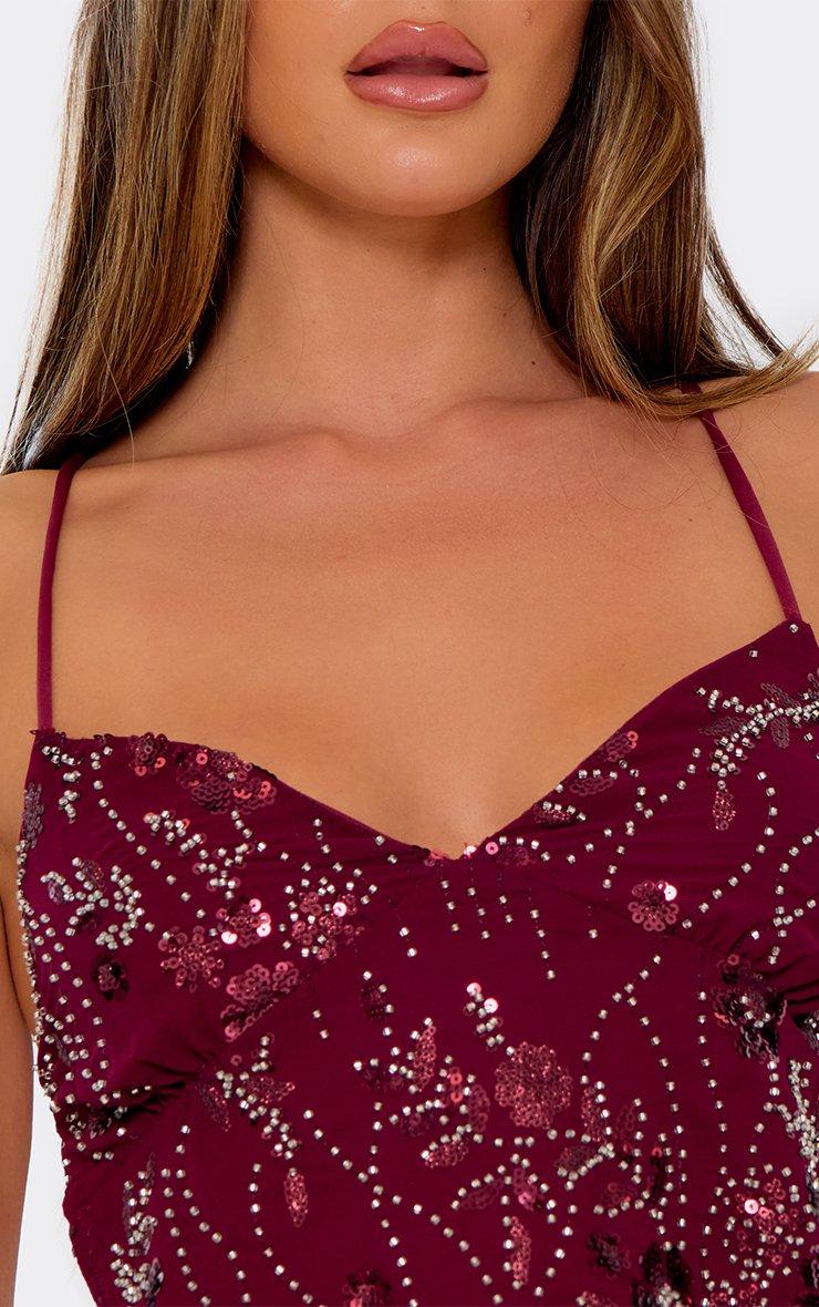 Strappy Tie Back Embellished Detail Cami Top In Plum Sequin