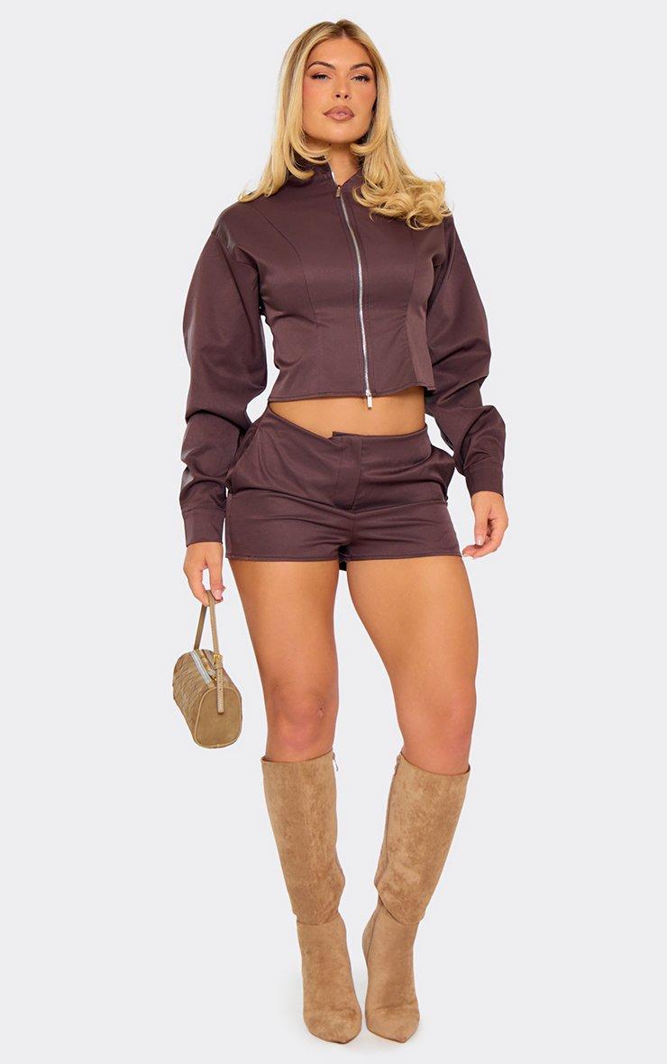 Low Rise Trim Detail Hot Pants In Chocolate Brown