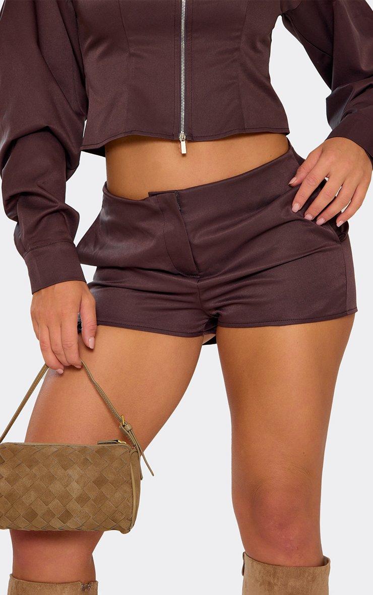 Low Rise Tie Detail Hot Pants In Chocolate Brown