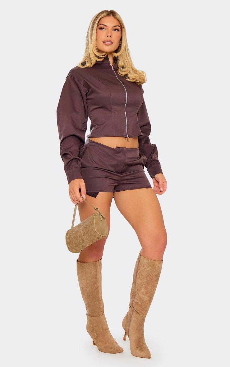 Mid Rise Front Pocket Tailored Fitted Hot Pants In Brown