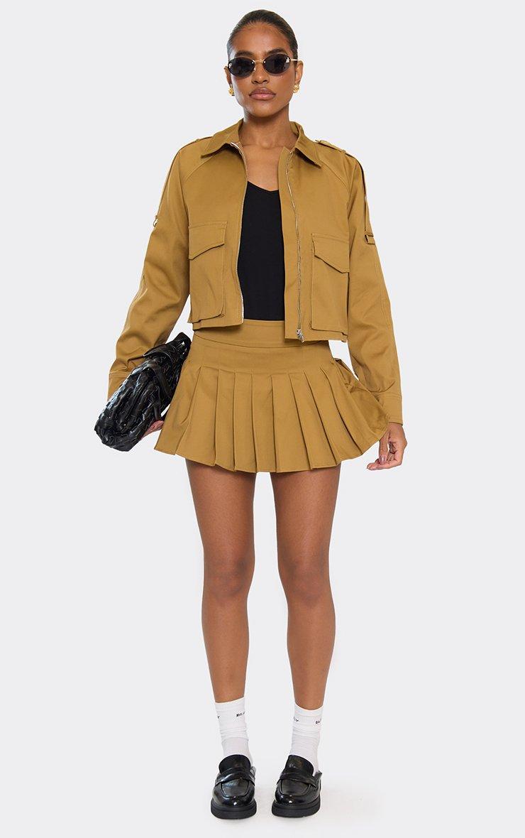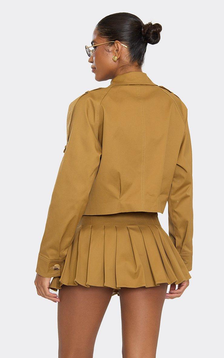 Long Sleeve Zip Front Cropped Jacket In Stone