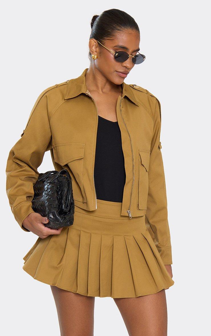 Low Rise Cargo Mini Bodycon Skirt In Stone