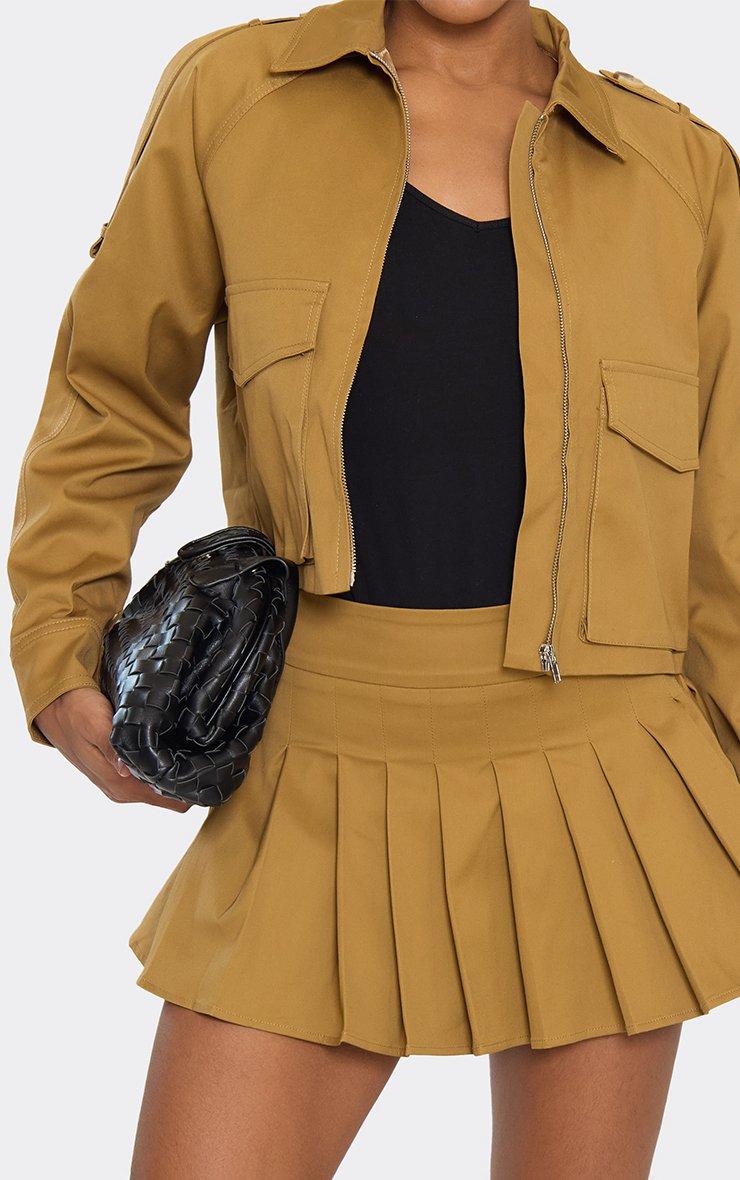 Mid Rise Zip Front Pocket Detail Mini Skirt In Stone