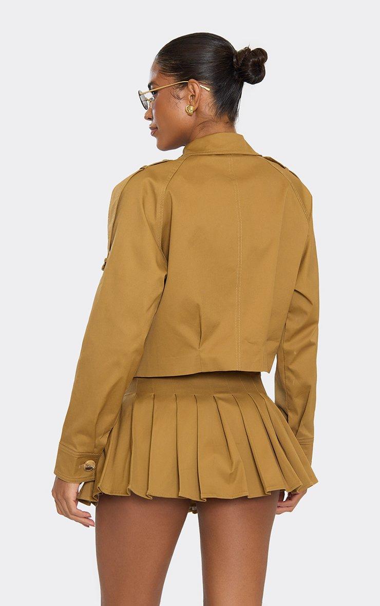 Mid Rise Popper Front Detail Mini Skirt In Stone
