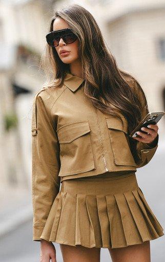 Mid Rise Pocket Detail Mini Skirt In Stone