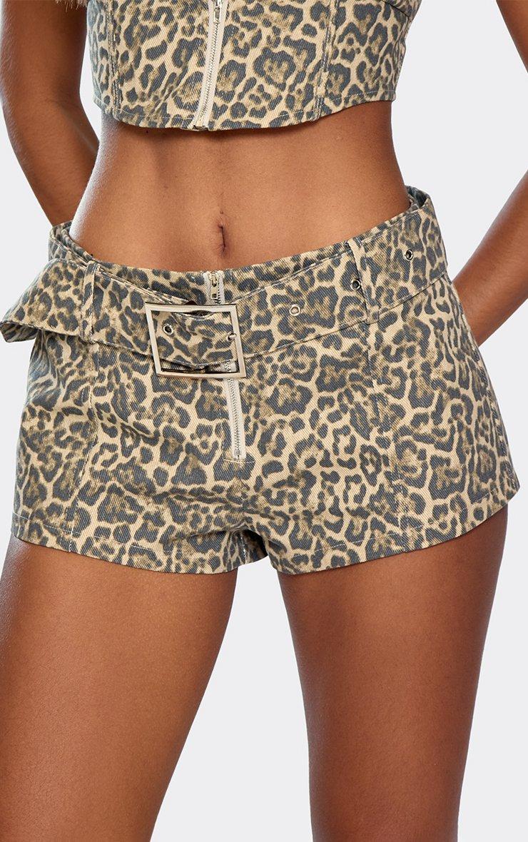 Zip Up Front Belted Booty Shorts In Brown Leopard Print