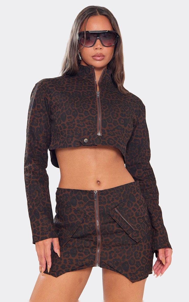 Oversized Belt Detail Cargo Style Cropped Jacket In Brown