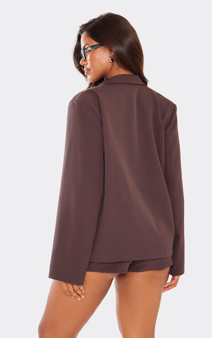 Long Sleeve Pocket Detail Oversized Blazer In Chocolate Brown