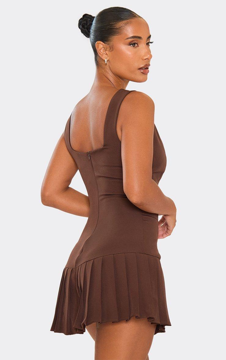 Sleeveless Pleated Hem Detail Playsuit In Chocolate Brown