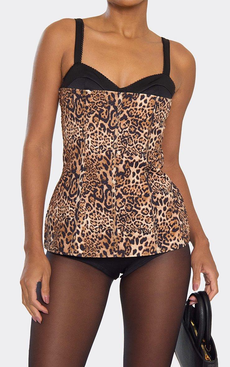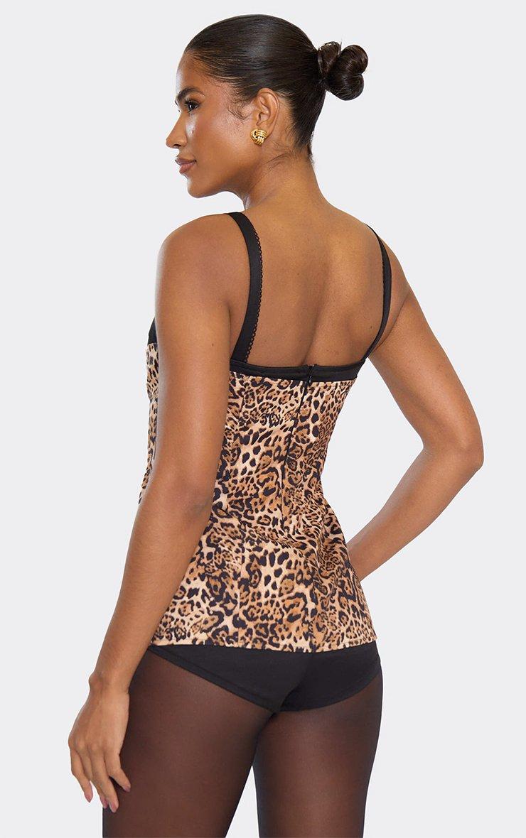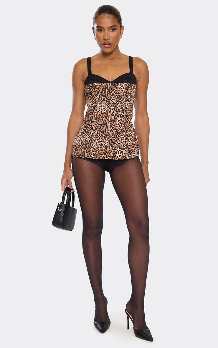 Square Neck Ruffle Detail Playsuit In Brown Leopard Print Lace