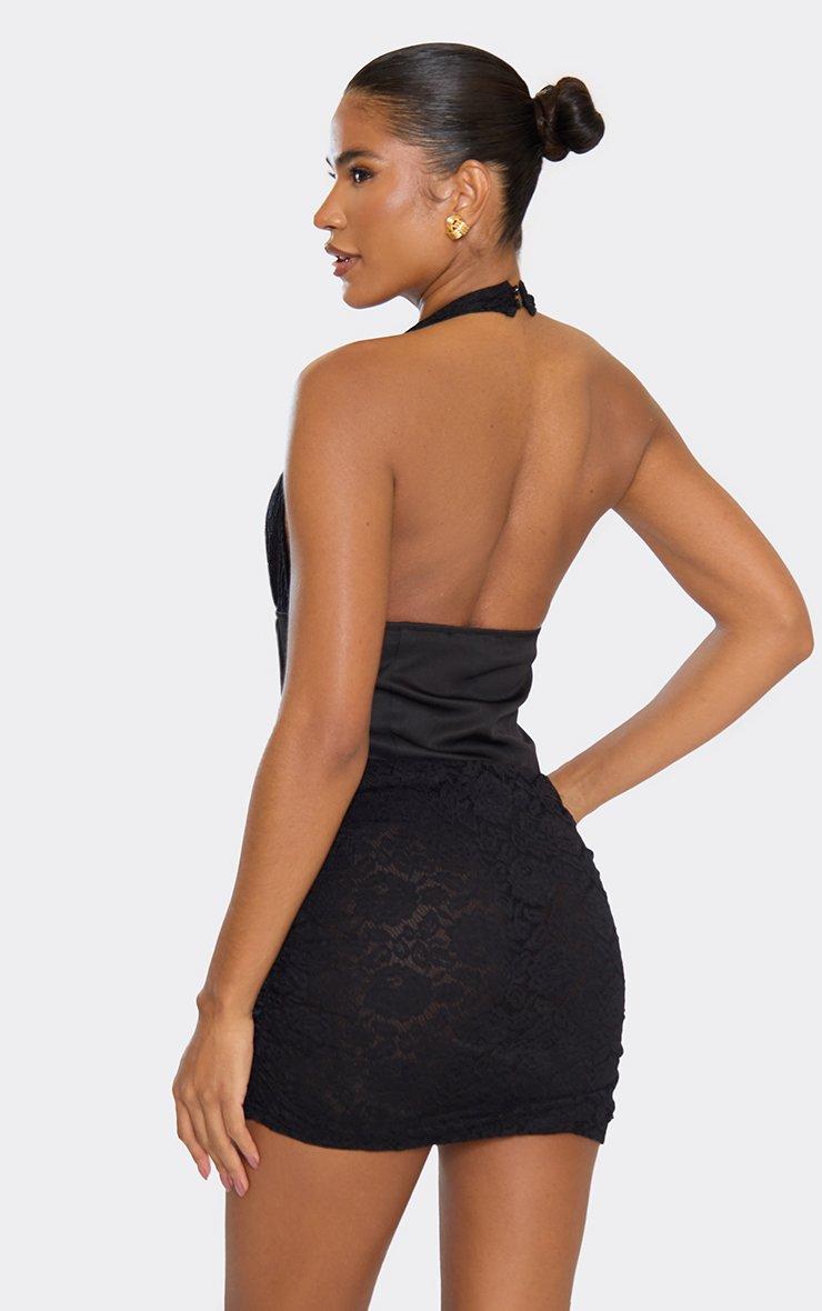 Halterneck Scoop Ruffle Hem Detail Mini Dress In Black Lace