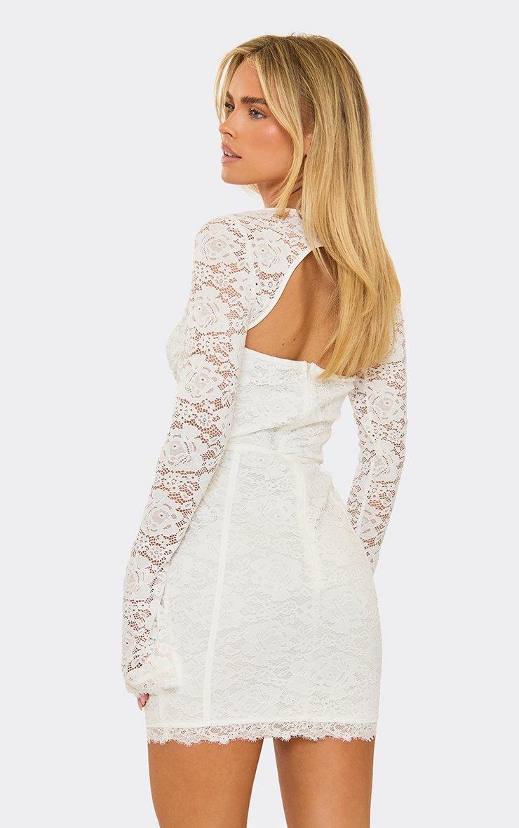 flared detachable sleeves underwire corset detail mini dress in white lace