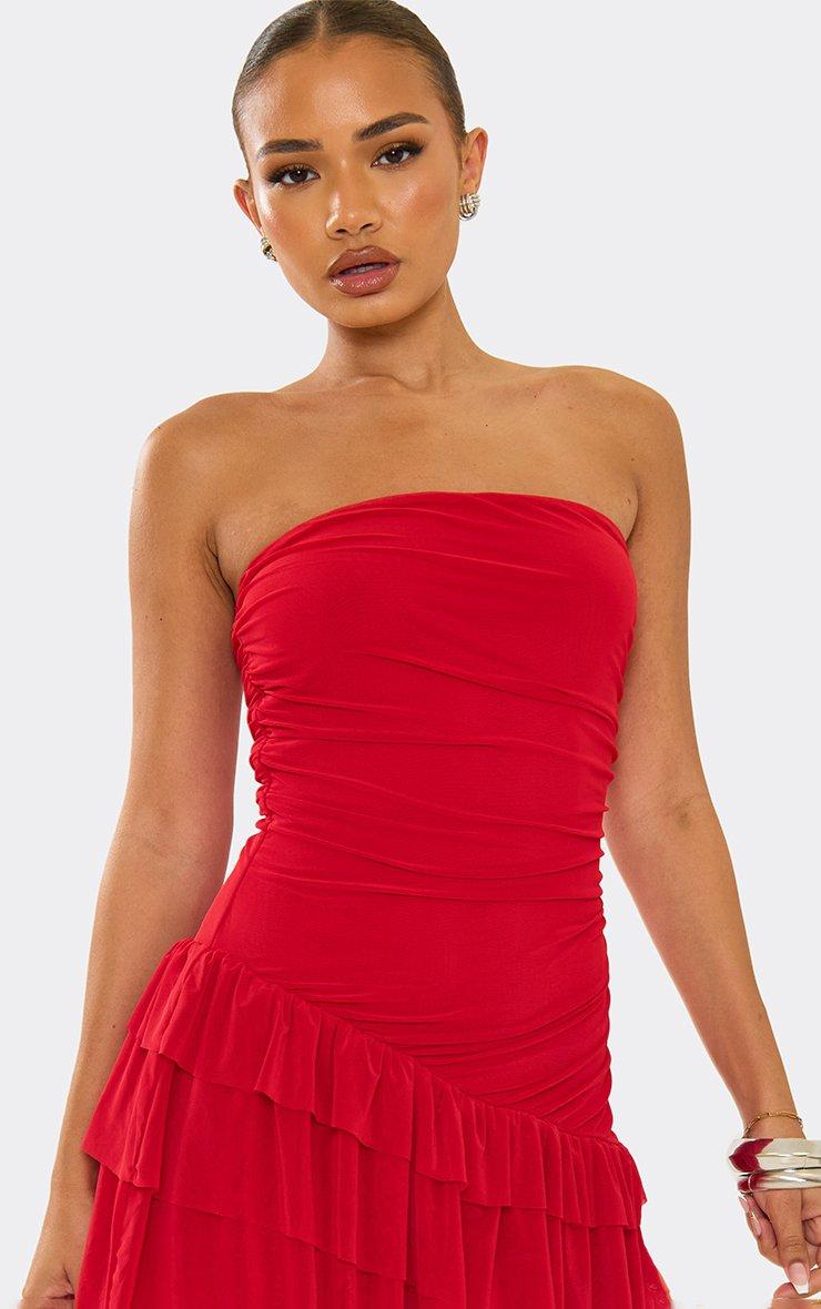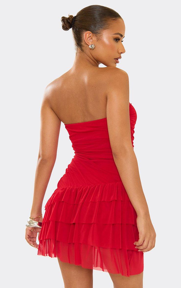 45908 Lace Square Neckline Frill Hem Mini Dress In Red