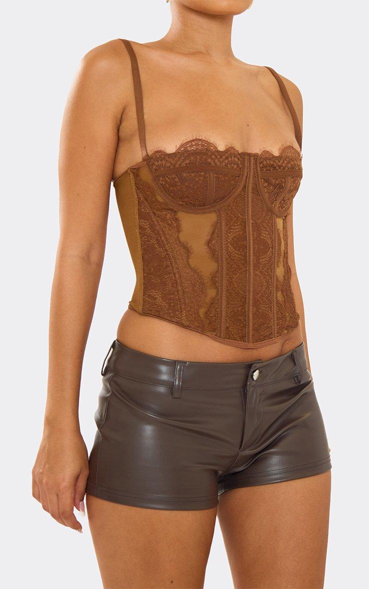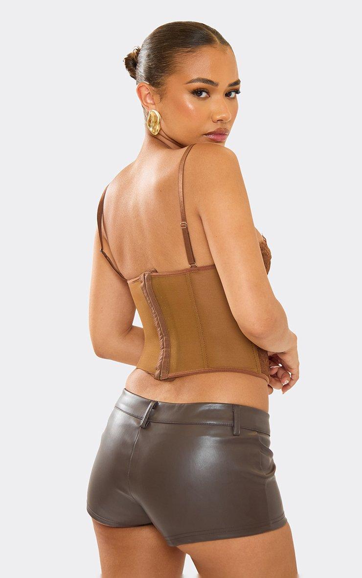 Cupped Detail Structured Corset Top In Chocolate Lace