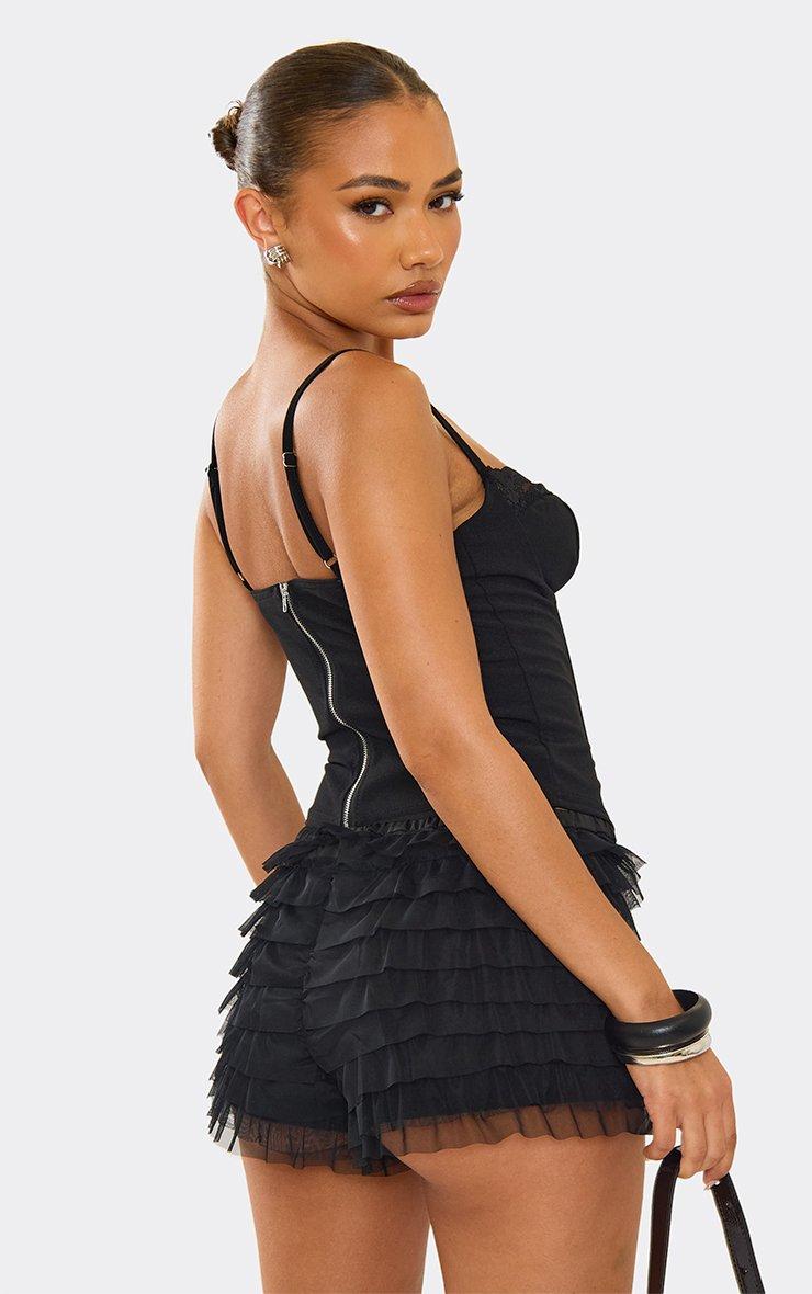 Bandeau Ruffle Detail Corset Top In Black