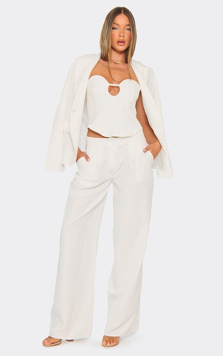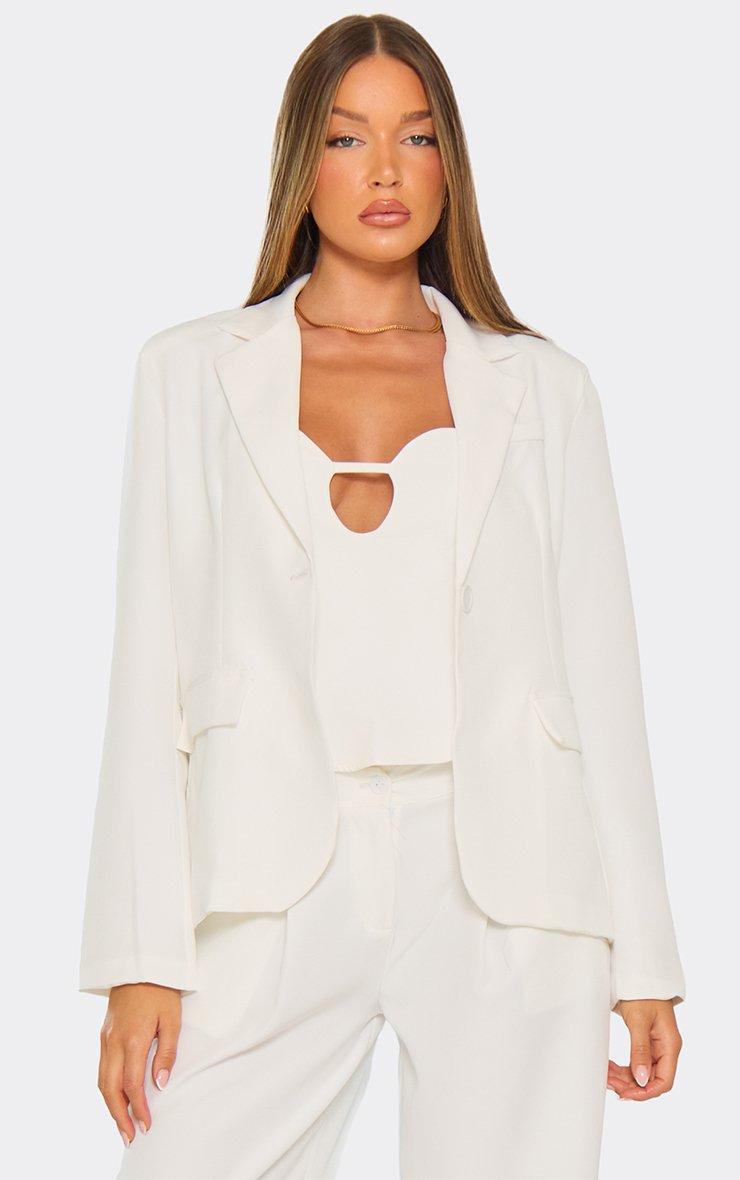 Long Sleeve Cropped Tailored Blazer In White