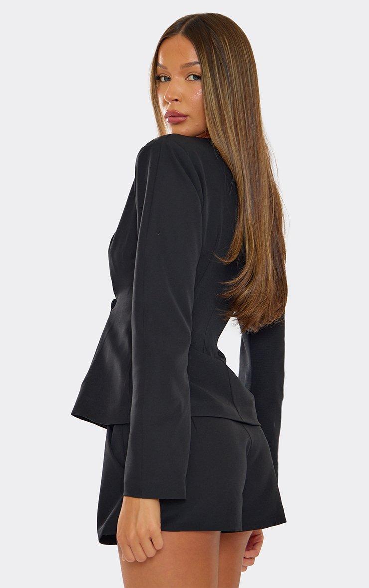 Long Sleeve Button Detail Cropped Tailored Blazer In Black