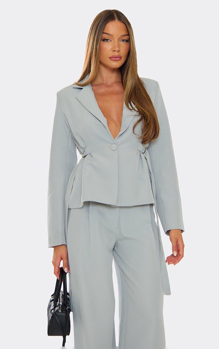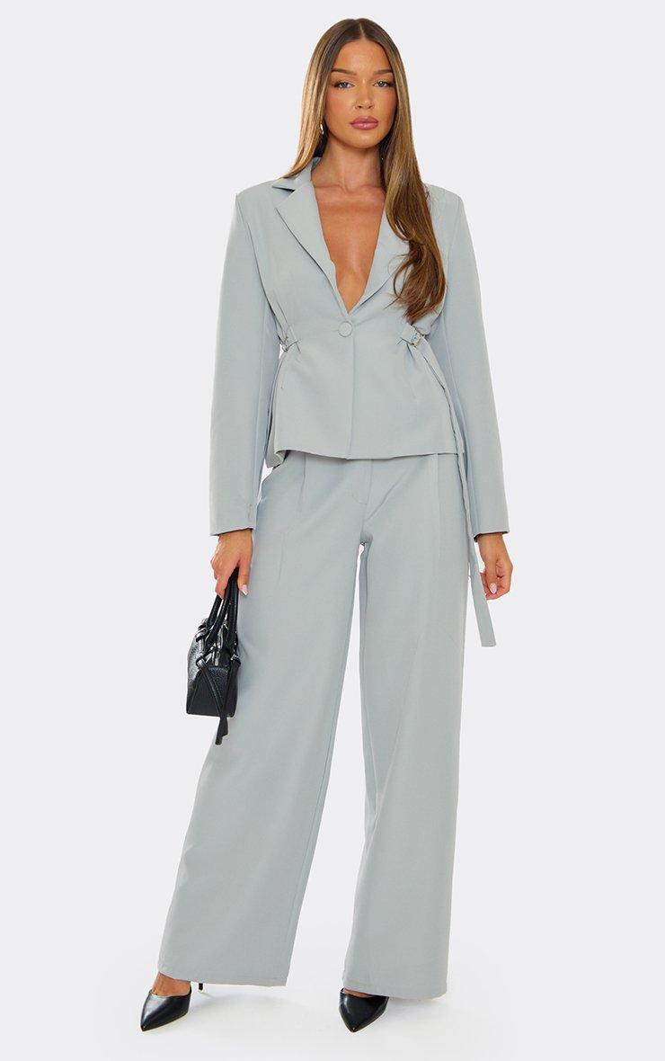 Tie Waist Wide Leg Detail Joggers In Light Grey Marl