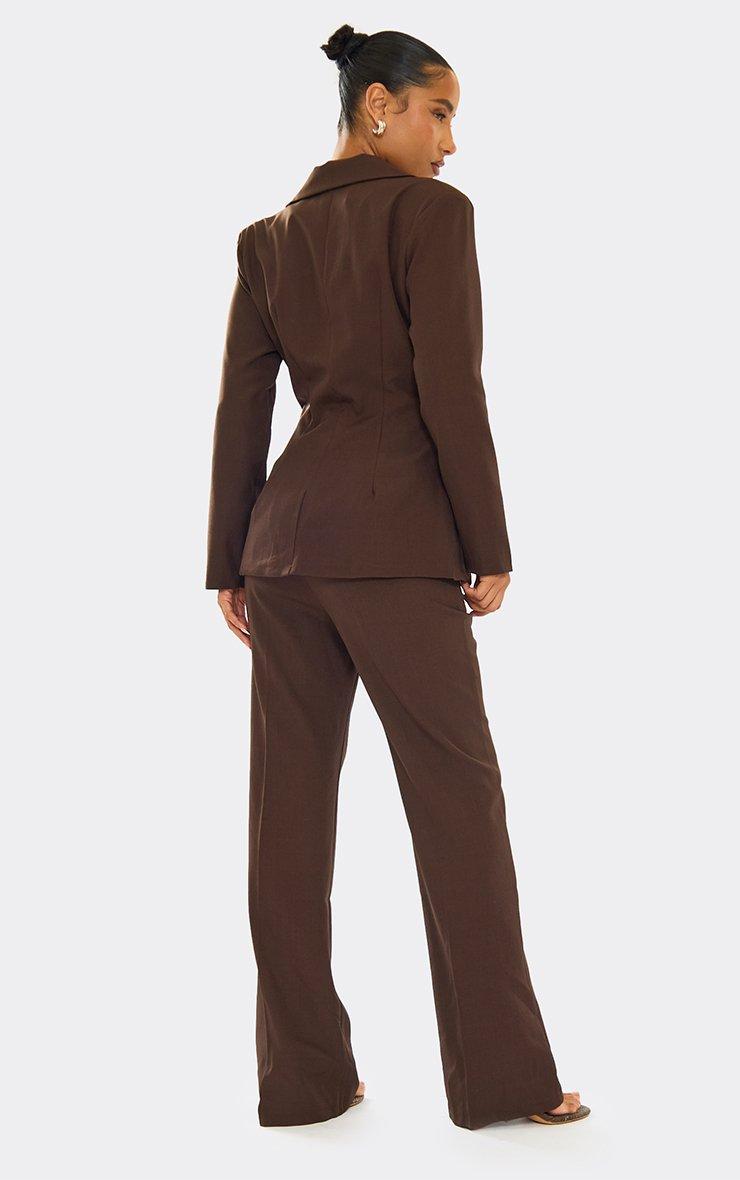 Ruched Panel Trim Detail Straight Leg Trousers In Chocolate Brown